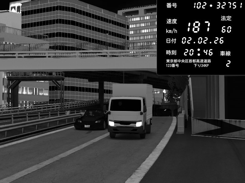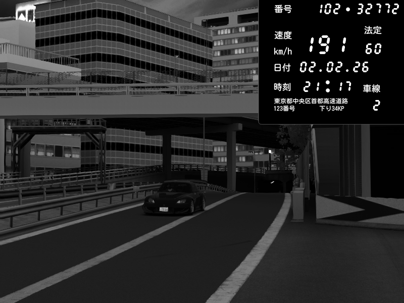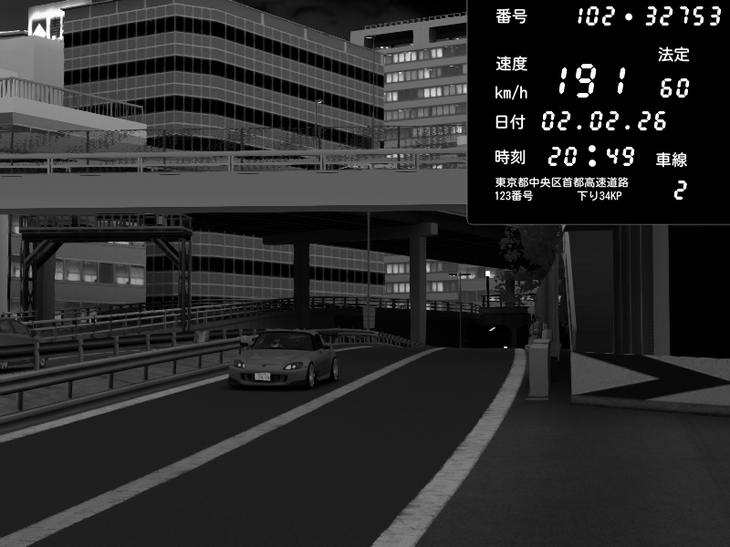 | 2026/02/02 20:49 | C1外回り 新富町 | 191 / 60 km/h | ( ・▽・) | Honda S2000 (AP2 - Legendary) | CAPTURE |