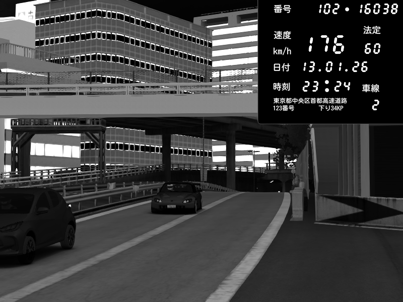 | 2026/01/13 23:36 | C1外回り 新富町 | 198 / 60 km/h | monaco-911senna | Honda S2000 (AP2 - Legendary) | CAPTURE |