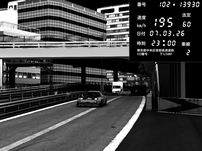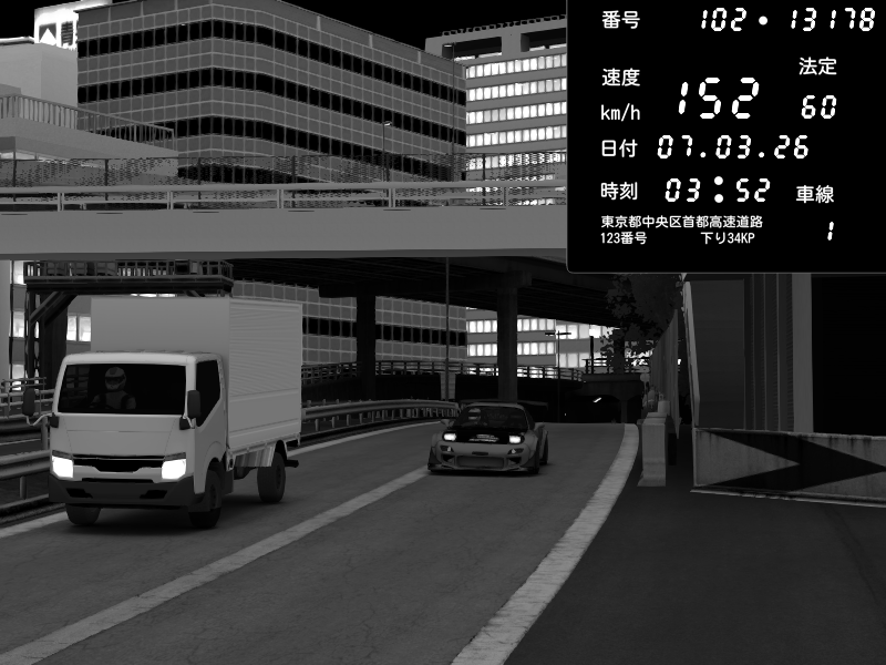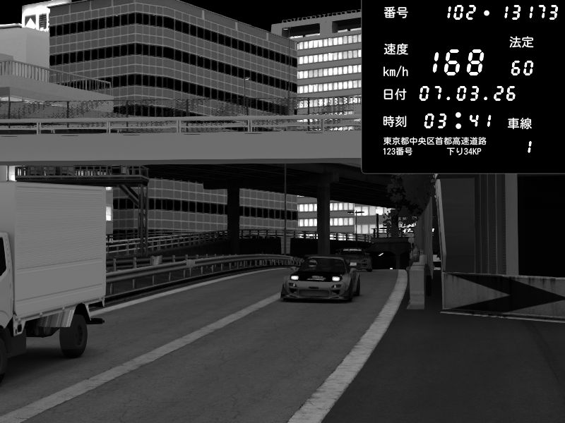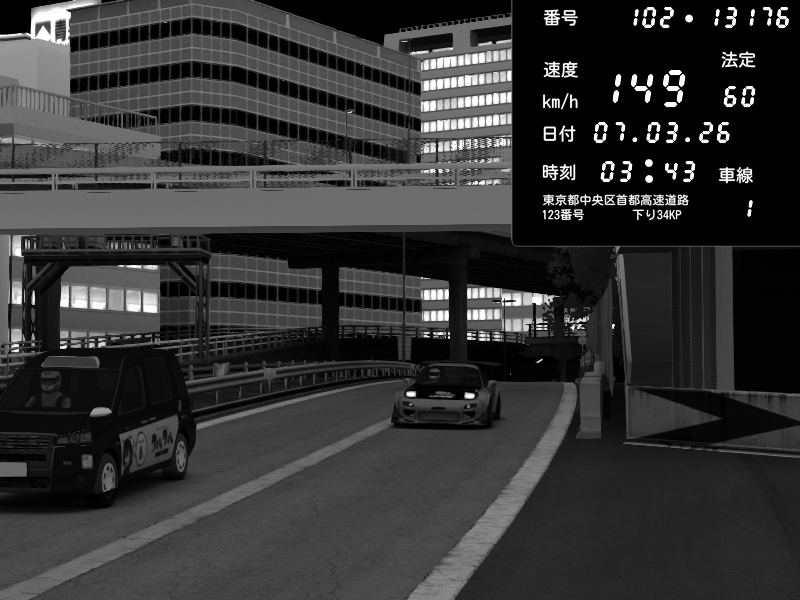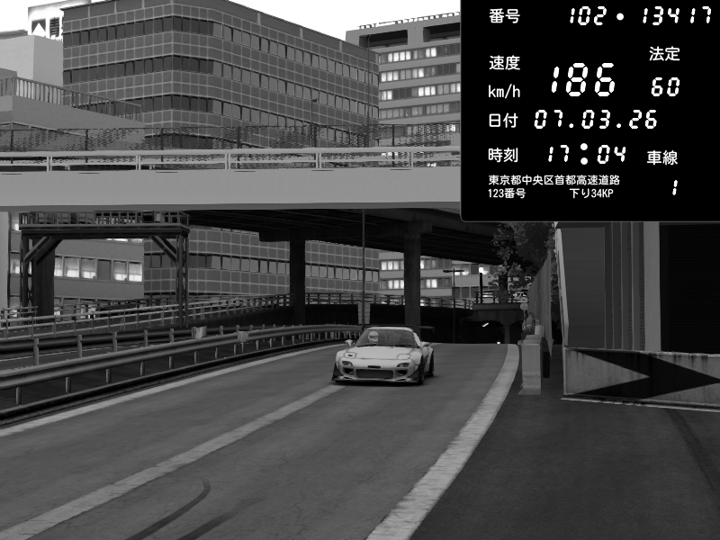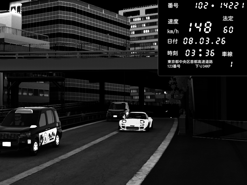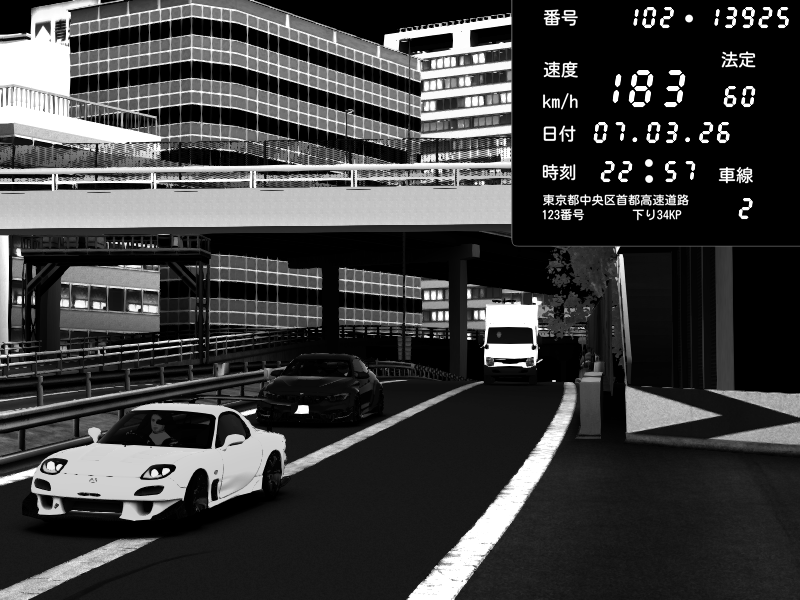 | 2026/03/07 23:11 | C1外回り 新富町 | 197 / 60 km/h | Escape77JP@pad | Mazda RX-7 FD3S RE Amemiya | CAPTURE |