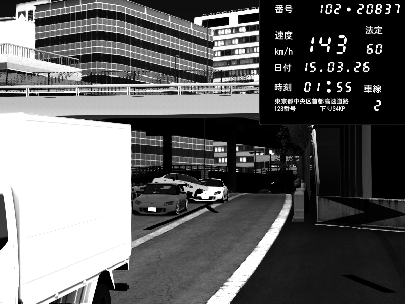 | 2026/03/15 01:27 | C1外回り 新富町 | 107 / 60 km/h | Shinra | Honda S2000 (AP2 - Legendary) | CAPTURE |