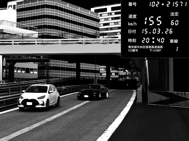 | 2026/03/15 20:41 | C1外回り 新富町 | 154 / 60 km/h | JetstreamKAZE | Pit Road M - Mitsubishi GTO Twin Turbo | CAPTURE |