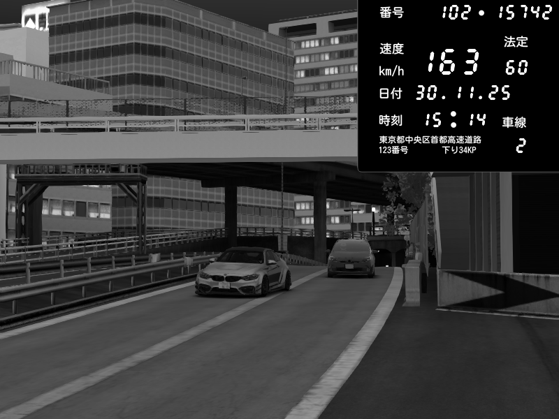 | 2025/11/30 22:43 | C1外回り 新富町 | 117 / 60 km/h | kurositon | BMW M4 crash.Sp Varis Widebody | CAPTURE |
