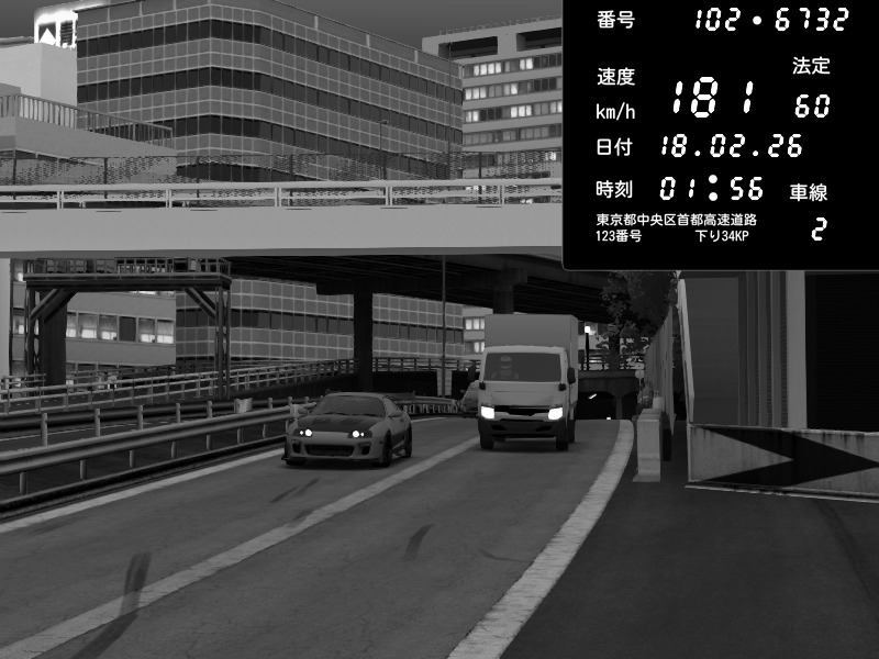 | 2026/02/18 02:32 | C1外回り 新富町 | 190 / 60 km/h | Raven | Pit Road M - Mitsubishi GTO Twin Turbo | CAPTURE |