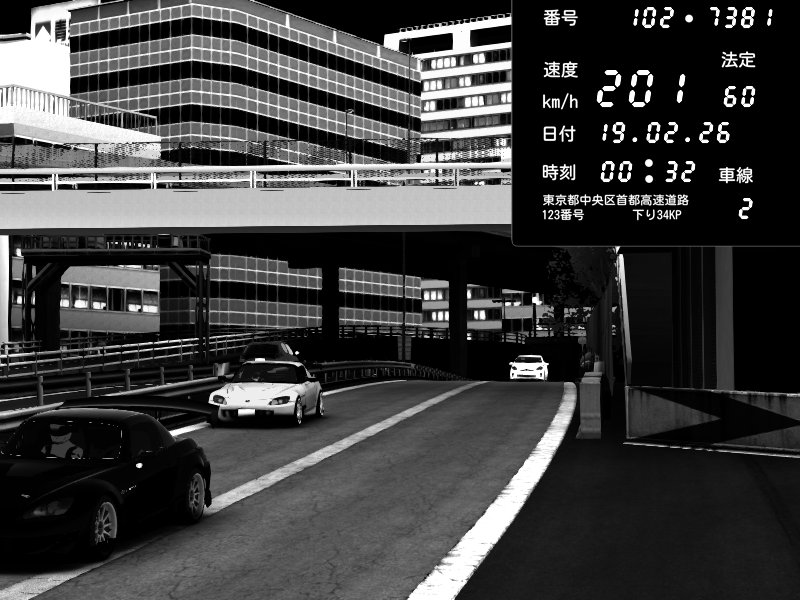 | 2026/02/19 00:32 | C1外回り 新富町 | 201 / 60 km/h | Shinra | Honda S2000 (AP2 - Legendary) | CAPTURE |
