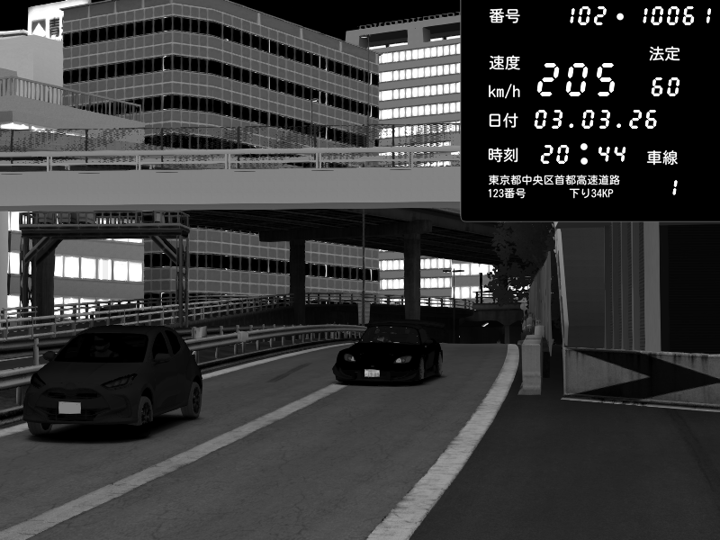 | 2026/03/03 20:44 | C1外回り 新富町 | 205 / 60 km/h | REO | Honda S2000 Turbo GT1 Amuse (AP1) | CAPTURE |