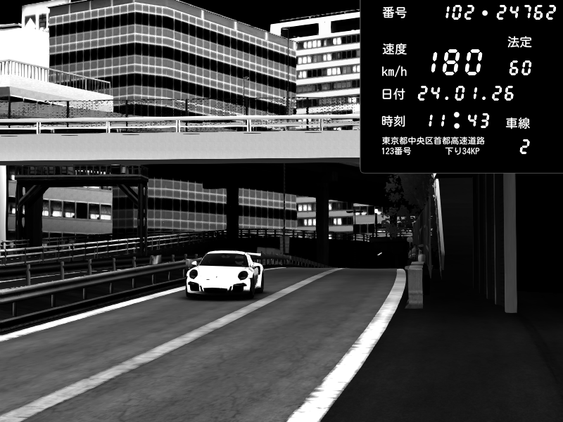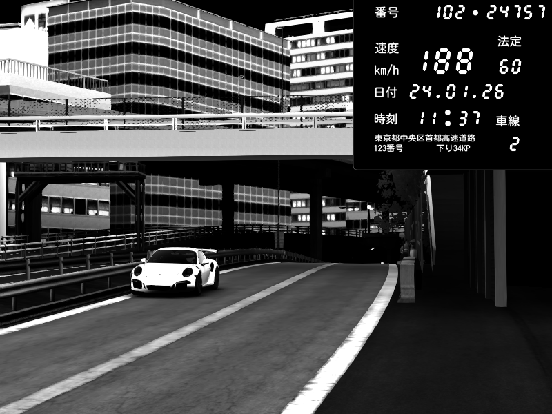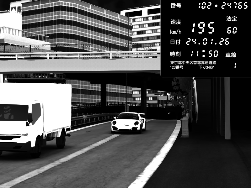 | 2026/01/24 11:32 | C1外回り 新富町 | 200 / 60 km/h | znD | Porsche 911 GT3 RS | CAPTURE |