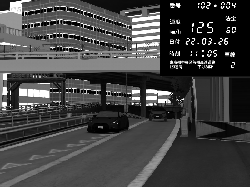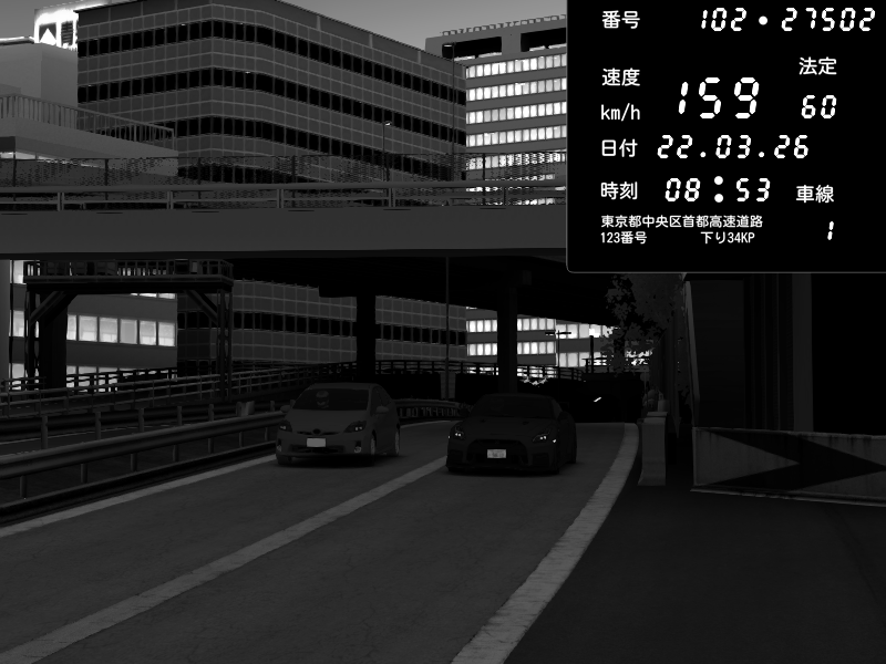 | 2026/03/22 09:29 | C1外回り 新富町 | 176 / 60 km/h | クロちゃん | Nissan GT-R NISMO 2017 | CAPTURE |