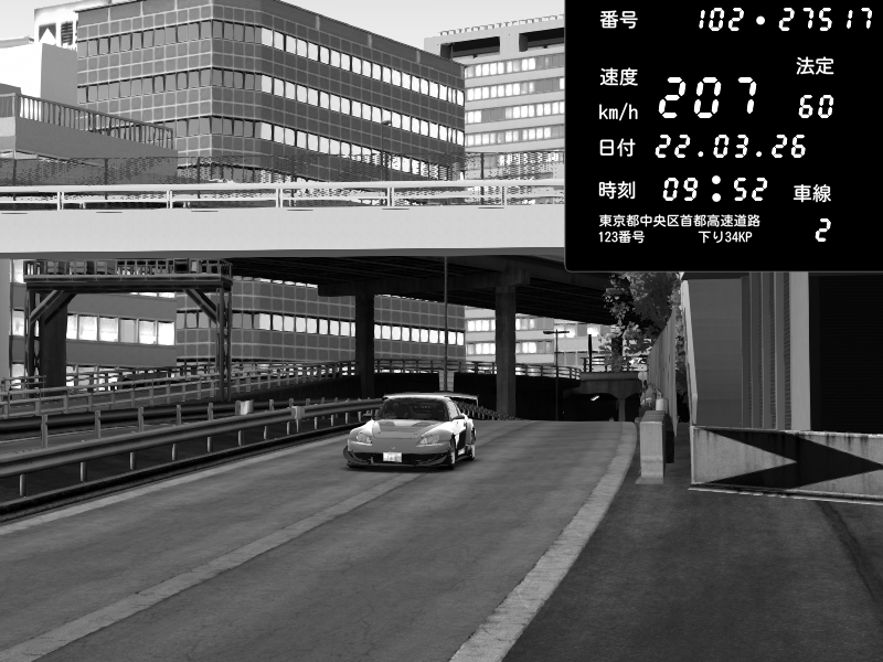 | 2026/03/22 09:52 | C1外回り 新富町 | 207 / 60 km/h | munyu0122 | Honda S2000 Turbo GT1 Amuse (AP1) | CAPTURE |