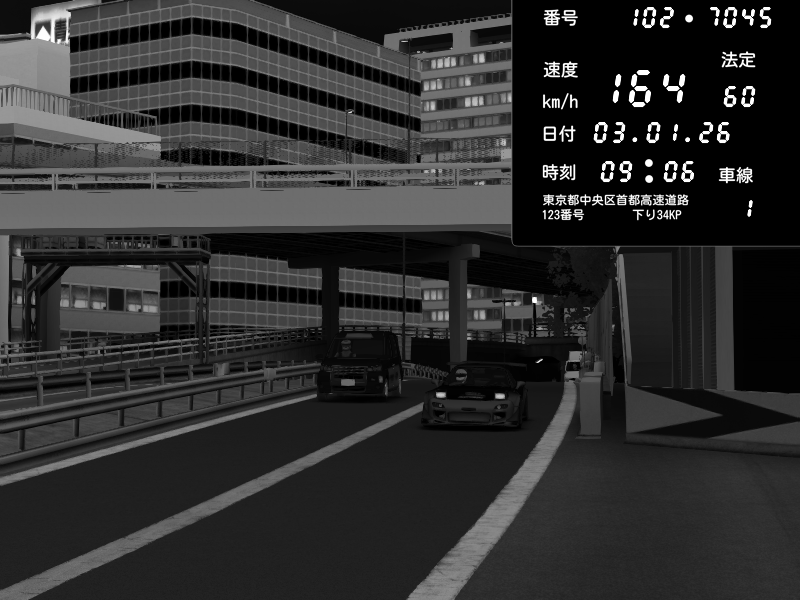 | 2026/01/03 10:36 | C1外回り 新富町 | 178 / 60 km/h | ナイトシフト | Honda S2000 (AP2 - Legendary) | CAPTURE |