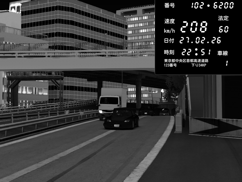 | 2026/02/27 16:08 | C1外回り 新富町 | 160 / 60 km/h | SHOW5 | Pit Road M - Mitsubishi GTO Twin Turbo | CAPTURE |