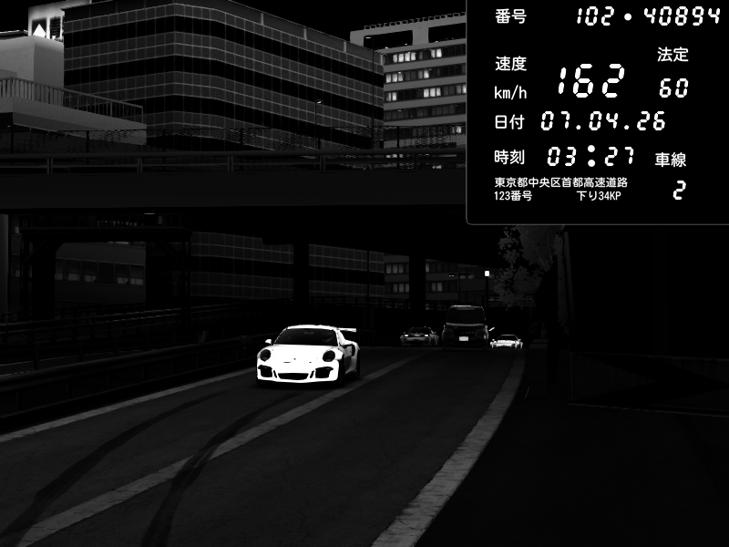 | 2026/04/07 03:27 | C1外回り 新富町 | 162 / 60 km/h | MASUO-JP | Porsche 911 GT3 RS | CAPTURE |