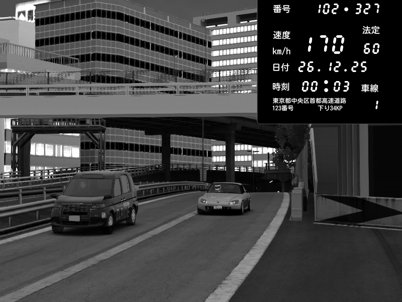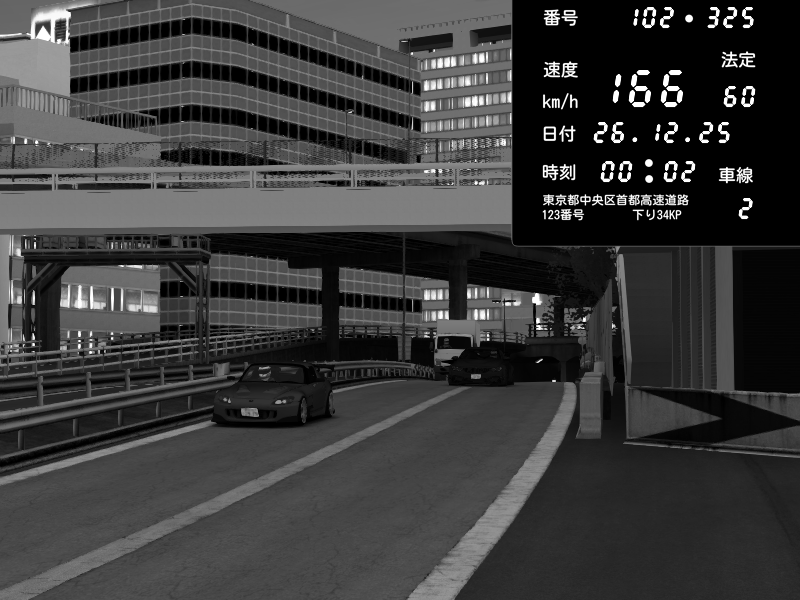 | 2025/12/26 00:05 | C1外回り 新富町 | 197 / 60 km/h | ojisandtift | Honda S2000 Turbo GT1 Amuse (AP1) | CAPTURE |