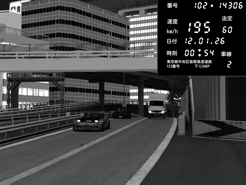 | 2026/01/12 00:30 | C1外回り 新富町 | 192 / 60 km/h | Escape77JP@pad | Honda S2000 (AP2 - Legendary) | CAPTURE |