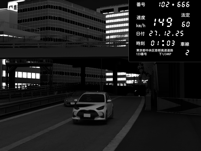| 2025/11/18 05:01 | C1外回り 新富町 | 180 / 60 km/h | SDH-M ~ Syriker | Nissan GT-R NISMO 2017 | CAPTURE |