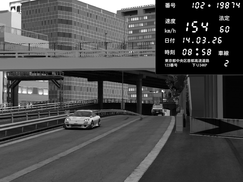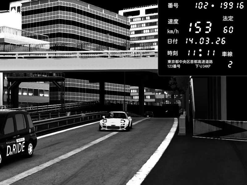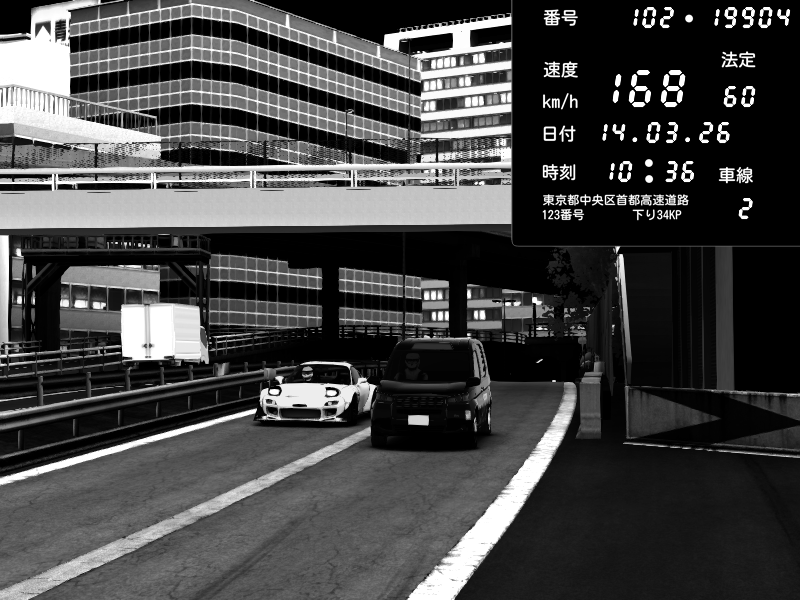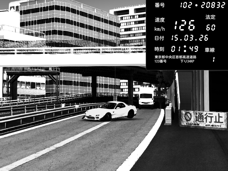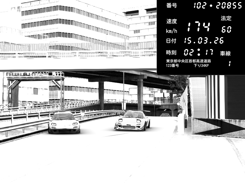 | 2026/03/15 01:49 | C1外回り 新富町 | 126 / 60 km/h | Player | Mazda RX-7 FD3S FEED Afflux GT3 | CAPTURE |