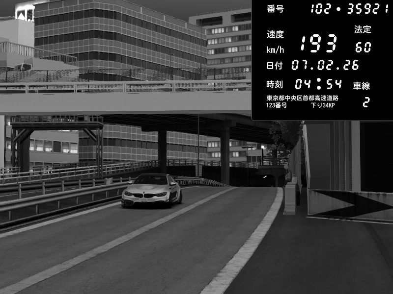 | 2026/02/07 04:54 | C1外回り 新富町 | 193 / 60 km/h | みにぼーい | BMW M4 crash.Sp Varis Widebody | CAPTURE |