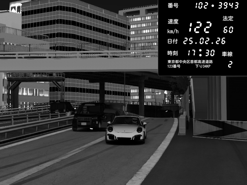 | 2026/02/26 01:50 | C1外回り 新富町 | 169 / 60 km/h | ましろ | Porsche 911 GT3 RS | CAPTURE |
