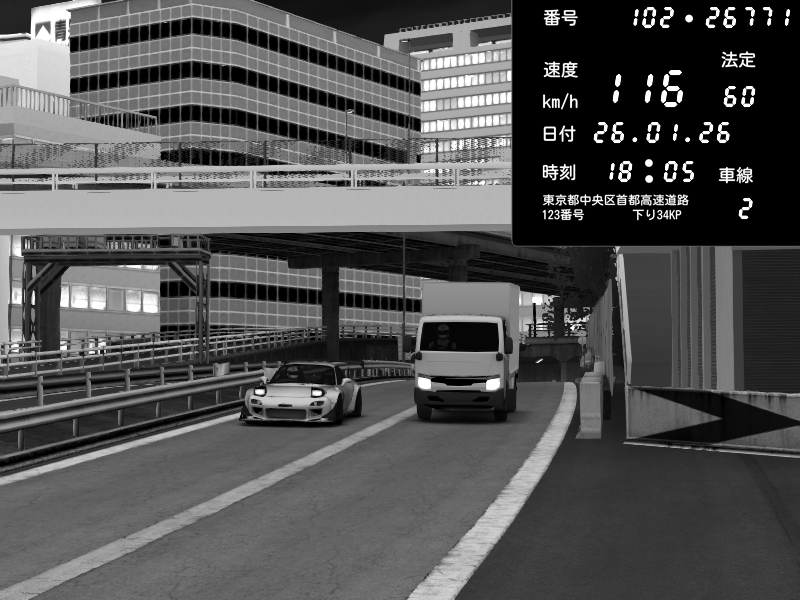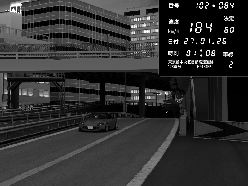 | 2026/01/26 17:59 | C1外回り 新富町 | 108 / 60 km/h | kaz145 | Honda S2000 (AP2 - Legendary) | CAPTURE |
