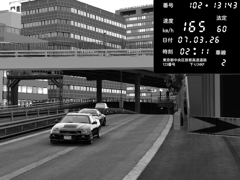 | 2026/03/07 23:07 | C1外回り 新富町 | 173 / 60 km/h | 天使型あーんばる | Nissan Skyline GT-R R34 Nismo Omori Factory S1 | CAPTURE |