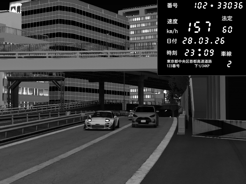 | 2026/03/29 01:57 | C1外回り 新富町 | 109 / 60 km/h | Pad | Mazda RX-7 FD3S FEED Afflux GT3 | CAPTURE |