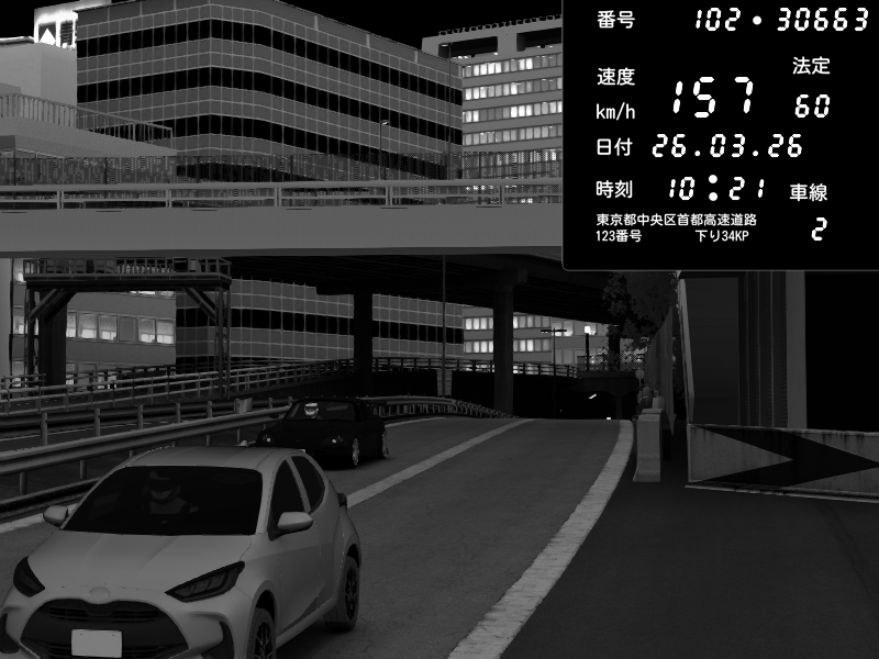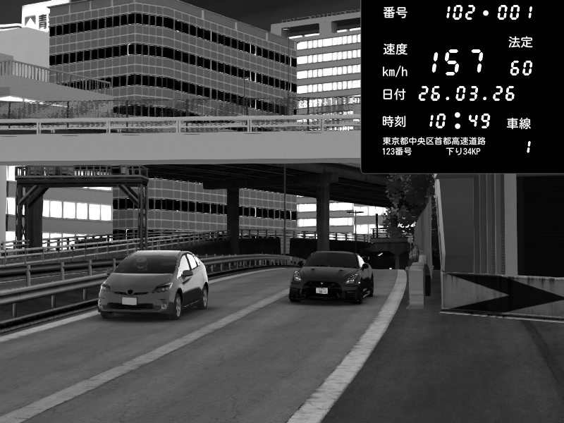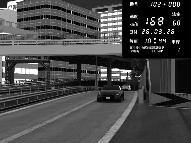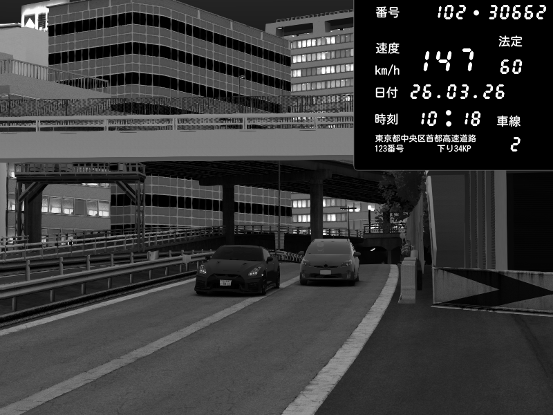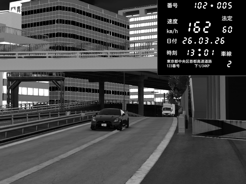| 2026/03/26 10:18 | C1外回り 新富町 | 147 / 60 km/h | tetu | Nissan GT-R NISMO 2017 | CAPTURE |