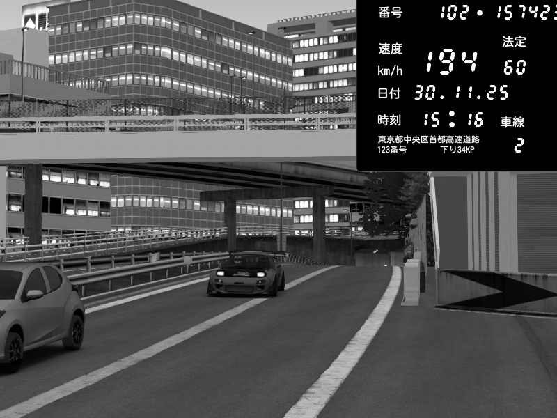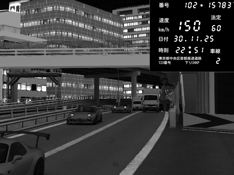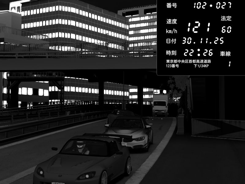 | 2025/11/30 22:50 | C1外回り 新富町 | 185 / 60 km/h | yukito(pad) | Honda S2000 (AP2 - Legendary) | CAPTURE |