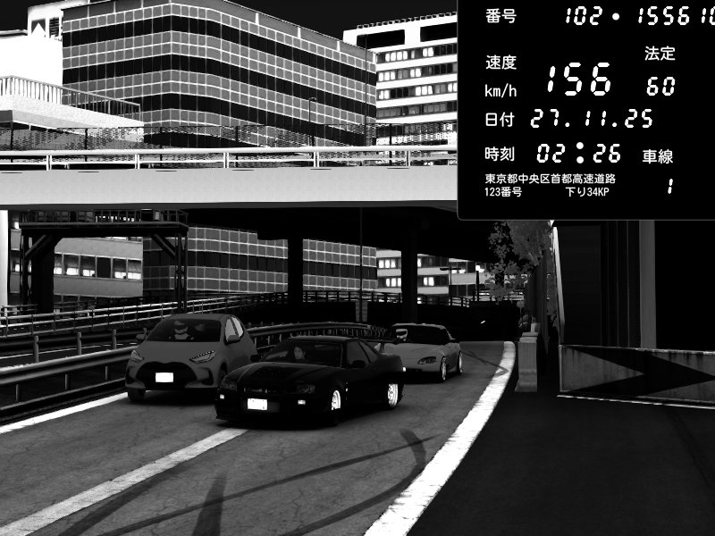 | 2025/11/27 02:26 | C1外回り 新富町 | 156 / 60 km/h | zeka | Honda S2000 (AP2 - Legendary) | CAPTURE |