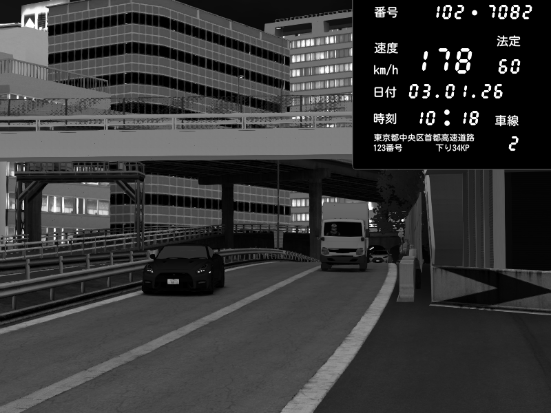 | 2026/01/03 10:18 | C1外回り 新富町 | 178 / 60 km/h | Moko_Foxtrot | Nissan GT-R NISMO 2017 | CAPTURE |