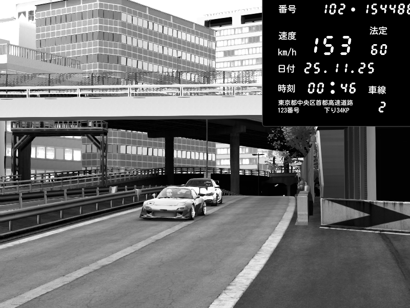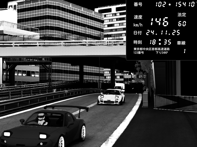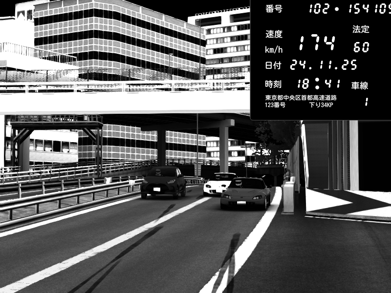 | 2025/11/25 00:53 | C1外回り 新富町 | 182 / 60 km/h | Player | Mazda RX-7 FD3S FEED Afflux GT3 | CAPTURE |