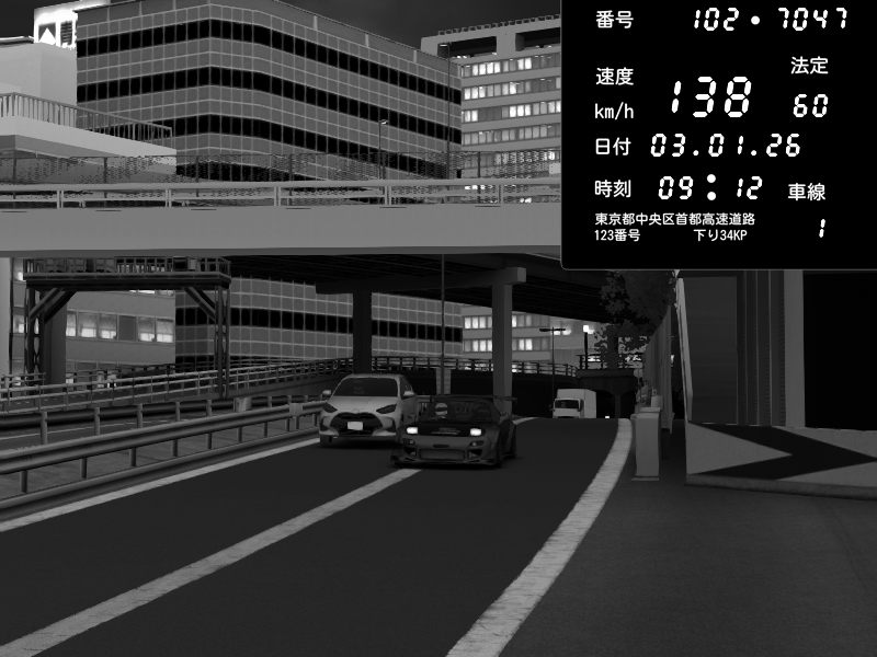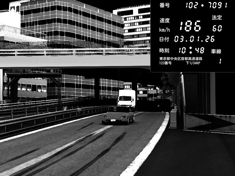 | 2026/01/03 10:48 | C1外回り 新富町 | 186 / 60 km/h | ナイトシフト | Honda S2000 (AP2 - Legendary) | CAPTURE |