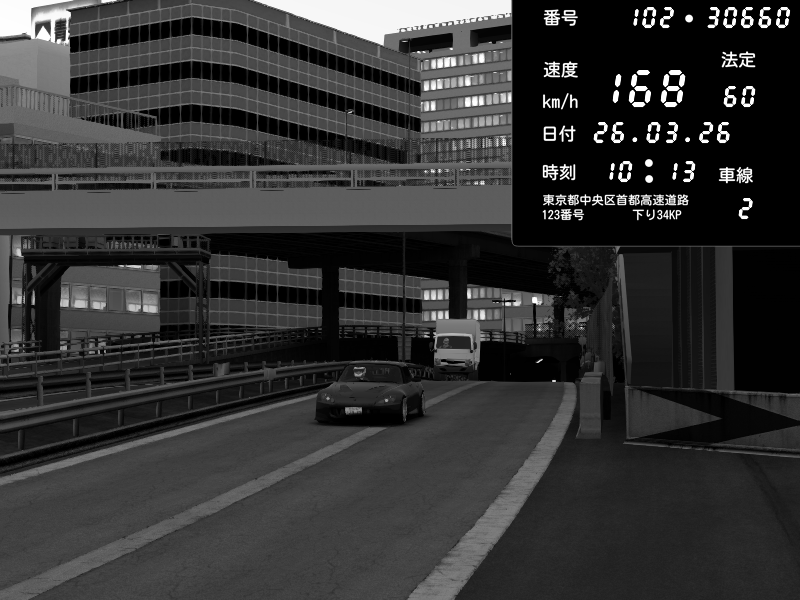 | 2026/03/26 10:13 | C1外回り 新富町 | 168 / 60 km/h | RandompelaajaMr | Honda S2000 (AP2 - Legendary) | CAPTURE |