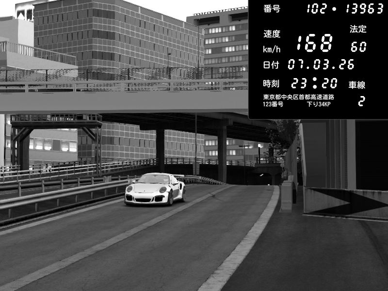 | 2026/03/07 23:20 | C1外回り 新富町 | 168 / 60 km/h | CY | Porsche 911 GT3 RS | CAPTURE |