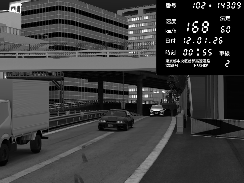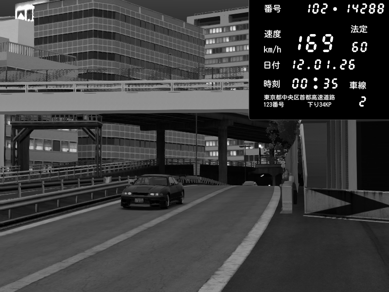| 2026/01/12 00:35 | C1外回り 新富町 | 169 / 60 km/h | gc8 lover | Nissan Skyline GTR R33 (S3 - Wangan) | CAPTURE |