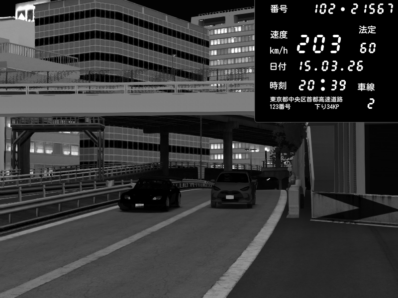 | 2026/03/15 20:39 | C1外回り 新富町 | 203 / 60 km/h | munyu0122 | Honda S2000 Turbo GT1 Amuse (AP1) | CAPTURE |