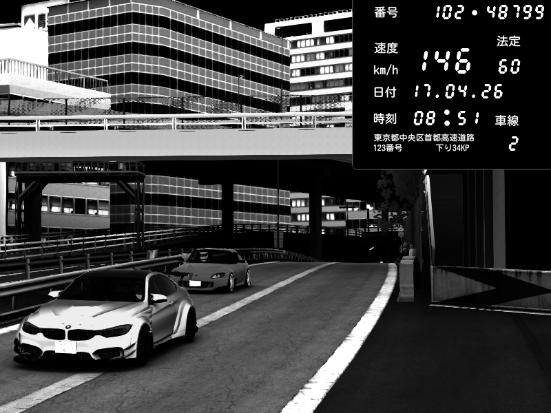 | 2026/04/17 22:05 | C1外回り 新富町 | 146 / 60 km/h | Exodius | Honda S2000 (AP2 - Legendary) | CAPTURE |