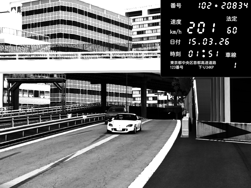 | 2026/03/15 01:51 | C1外回り 新富町 | 201 / 60 km/h | Shutoko Queen | Honda S2000 (AP2 - Legendary) | CAPTURE |