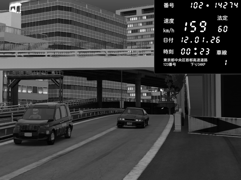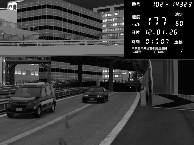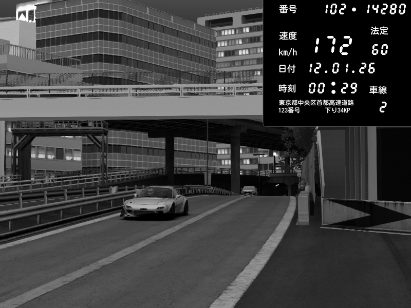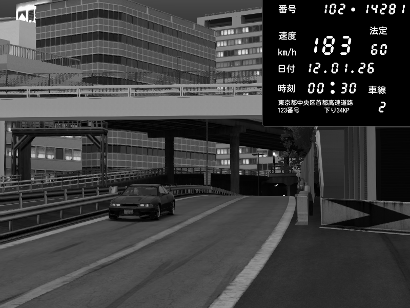 | 2026/01/12 00:59 | C1外回り 新富町 | 176 / 60 km/h | gc8 lover | Nissan Skyline GTR R33 (S3 - Wangan) | CAPTURE |