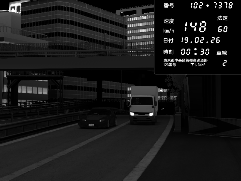 | 2026/02/19 00:13 | C1外回り 新富町 | 206 / 60 km/h | SSmr | Honda S2000 (AP2 - Legendary) | CAPTURE |