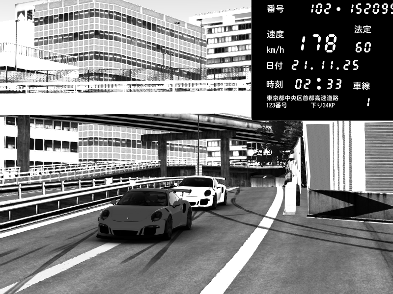 | 2025/11/21 02:58 | C1外回り 新富町 | 167 / 60 km/h | ojisandrift | Porsche 911 GT3 RS | CAPTURE |