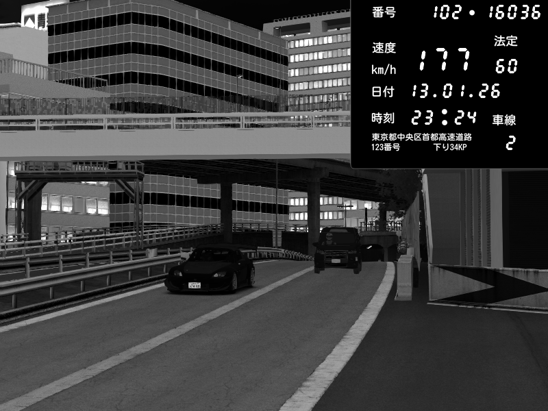 | 2026/01/13 23:30 | C1外回り 新富町 | 169 / 60 km/h | Escape77JP@pad | Honda S2000 (AP2 - Legendary) | CAPTURE |