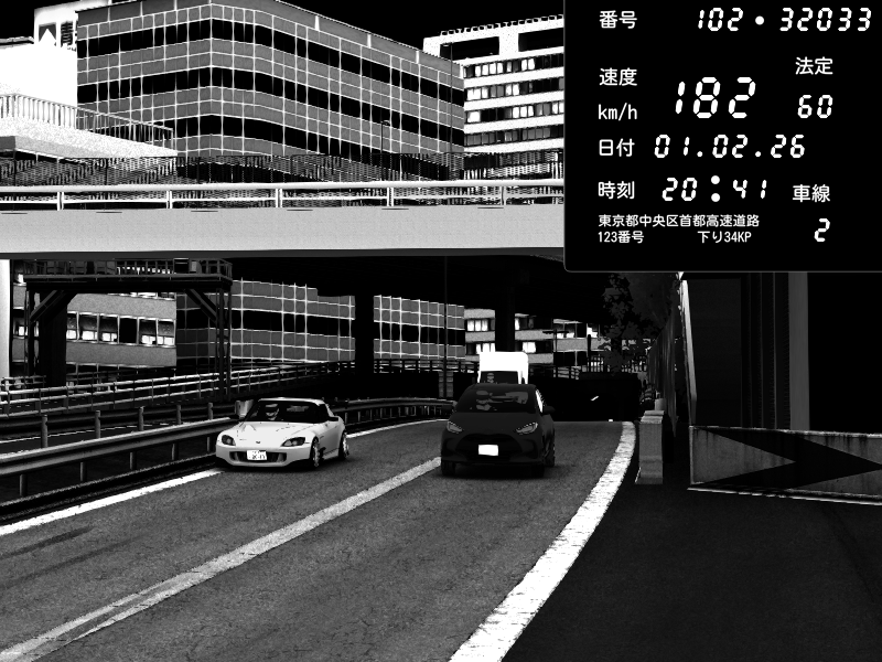 | 2026/02/01 20:41 | C1外回り 新富町 | 182 / 60 km/h | AVANTE | Honda S2000 (AP2 - Legendary) | CAPTURE |