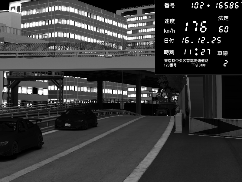 | 2025/12/16 11:27 | C1外回り 新富町 | 176 / 60 km/h | att | BMW M4 crash.Sp Varis Widebody | CAPTURE |