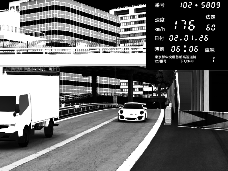 | 2026/01/02 06:00 | C1外回り 新富町 | 178 / 60 km/h | Masakichi | Porsche 911 GT3 RS | CAPTURE |