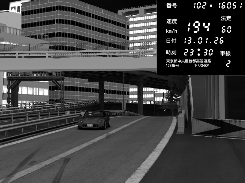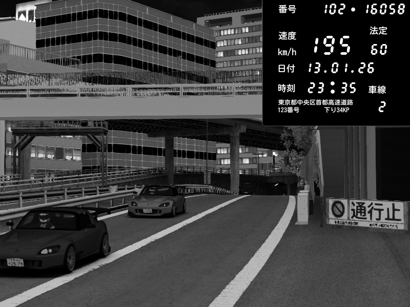 | 2026/01/13 23:40 | C1外回り 新富町 | 198 / 60 km/h | yuzu | Honda S2000 (AP2 - Legendary) | CAPTURE |