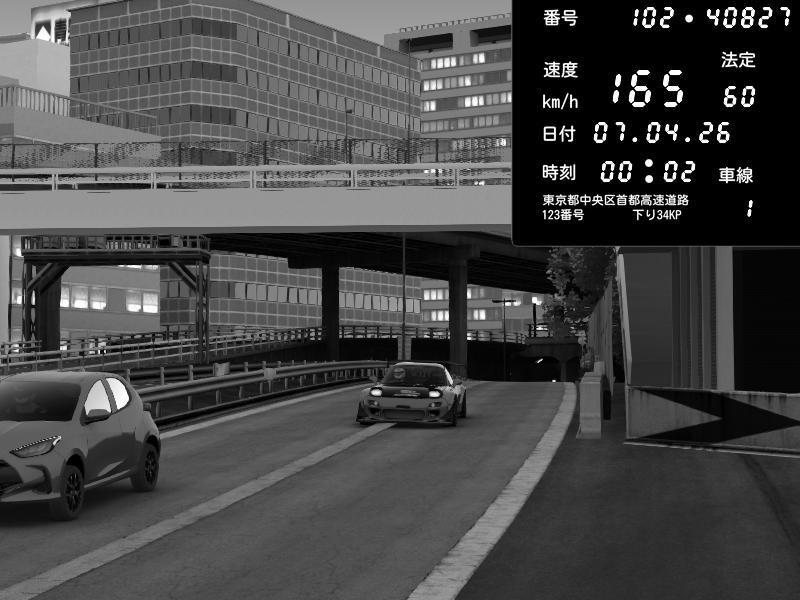 | 2026/04/06 14:02 | C1外回り 新富町 | 193 / 60 km/h | A1z | Honda S2000 (AP2 - Legendary) | CAPTURE |