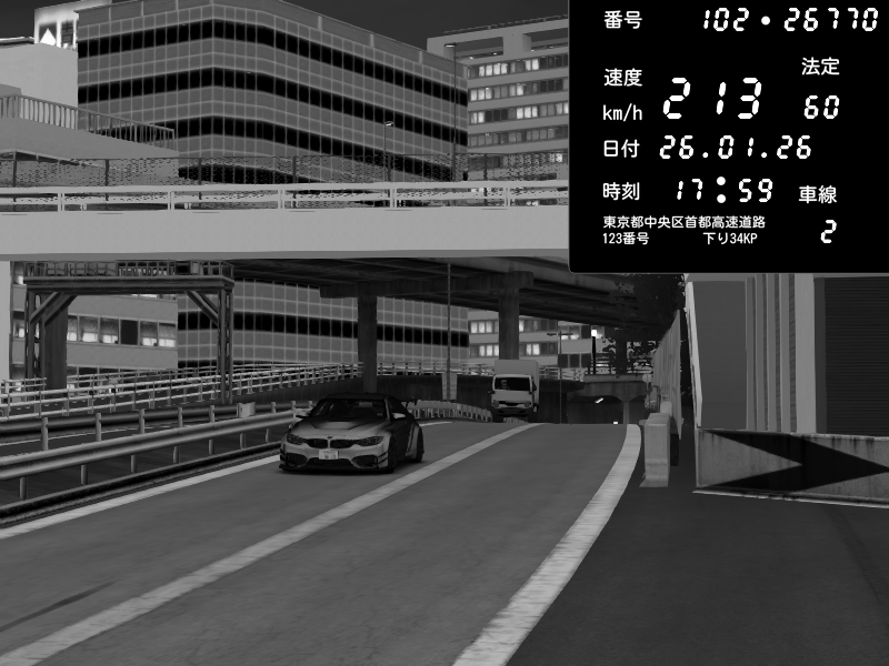 | 2026/01/26 17:59 | C1外回り 新富町 | 213 / 60 km/h | Nyaron | BMW M4 crash.Sp Varis Widebody | CAPTURE |