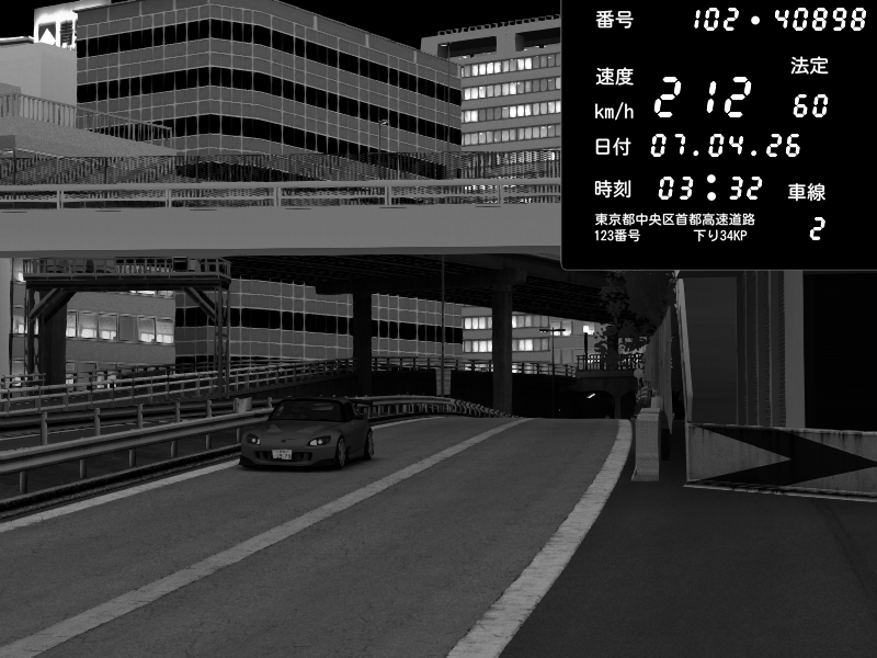 | 2026/04/07 03:32 | C1外回り 新富町 | 212 / 60 km/h | Sh0a | Honda S2000 (AP2 - Legendary) | CAPTURE |