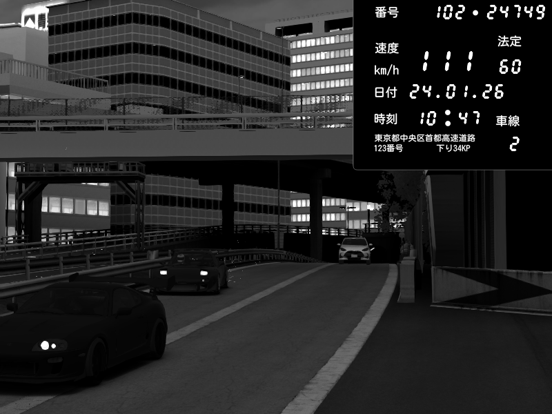 | 2026/01/24 10:19 | C1外回り 新富町 | 164 / 60 km/h | クロちゃん | Toyota Supra MKIV Time Attack | CAPTURE |