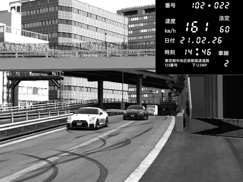 | 2026/02/21 14:32 | C1外回り 新富町 | 117 / 60 km/h | Steve Naoki | Nissan GT-R NISMO 2017 | CAPTURE |