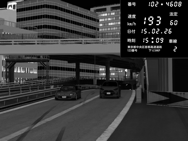 | 2026/02/15 15:03 | C1外回り 新富町 | 200 / 60 km/h | Shinra | Honda S2000 (AP2 - Legendary) | CAPTURE |